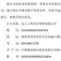 我公司因業(yè)務(wù)發(fā)展需要,變更公司名稱(chēng)為:遠(yuǎn)大工程項(xiàng)目管理有限公司,現(xiàn)已將公司基本賬戶(hù)變更完畢,從即日起收款及開(kāi)票信息按最新內(nèi)...